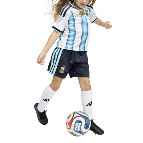 Llená de celeste y blanco a los más peques de la casa con la nueva camiseta Argentina 2025/2026. Llevás 2 camisetas para niños y niñas pagando solo 1.